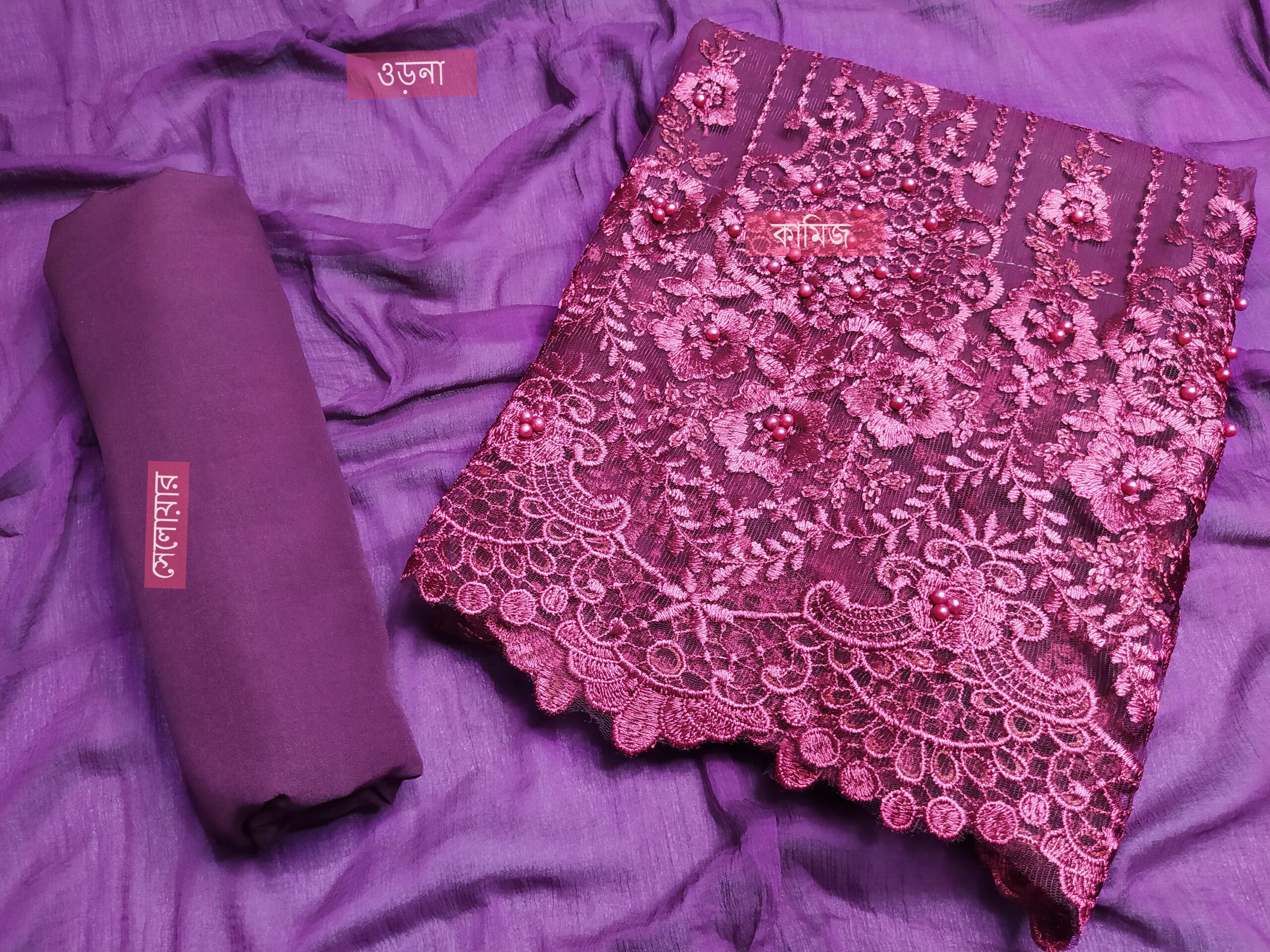 4পিস আনস্টিচড এমব্রয়ডারি ডিজাইন with Pearl ইনার সহ – মেয়েদের নতুন কালেকশন । আরামদায়ক ও মানসম্পন্ন কাপড় দিয়ে তৈরি এবং নেটের উপর এমব্রয়ডারি করা । কাপড়ের গুনগতমান খুবই ভালো এবং সুন্দর, এই গরমে থ্রি পিসটি ব্যবহারে অনেক আরামদায়ক হবে ।রিজনেবল প্রাইজে এই সুন্দর ড্রেসটি পেয়ে যাচ্ছেন শুধুমাত্র shopibird.com থেকে।সাথে সারা দেশে পাচ্ছেন ক্যাশ অন ডেলিভারি ।