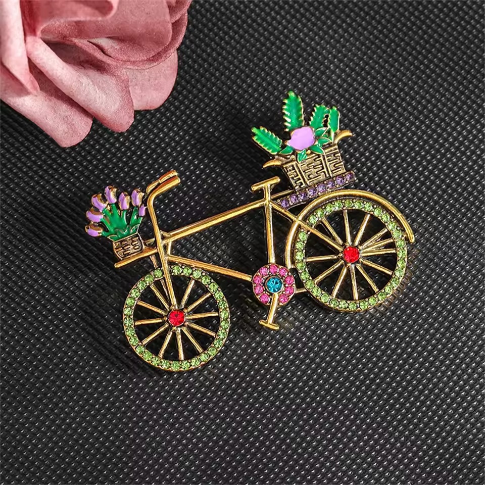 Item Name : Flower Basket Bicycle Brooch