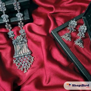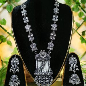 Bonolota Styled Jerman Silver Long Sita Necklace With Matching Earrings.